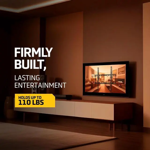 HEAVY DUTY - Securely supports TVs weighing up to 110 lbs, ensuring stability and reliability for your entertainment setup