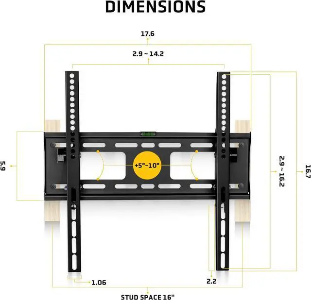 UNIVERSAL COMPATIBILITY - Fits most 32-55 inch flat TVs up to 110 lbs with VESA patterns from 200x200mm to 400x400mm. Designed for wood studs 16" inches apart (not for drywall alone)