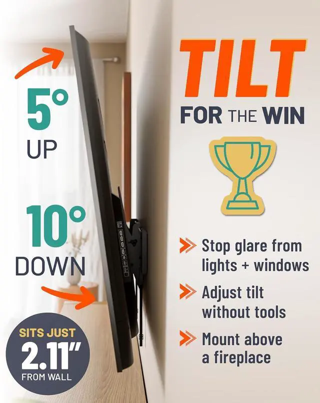Slim & Low-Profile: Keeps your TV just 2.11 " from the wall for that clean, sleek, floating-screen look.