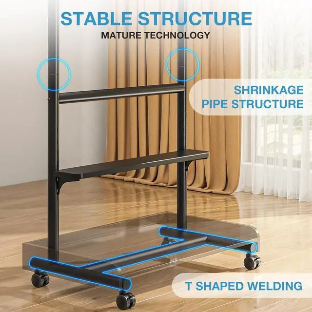 Unmatched Stability Engineered with a robust T-shaped welded base and a reinforced 1.57 i nch round tube, this TV stand guarantees superior stability while adding a contemporary and minimalist flair to your living space.
