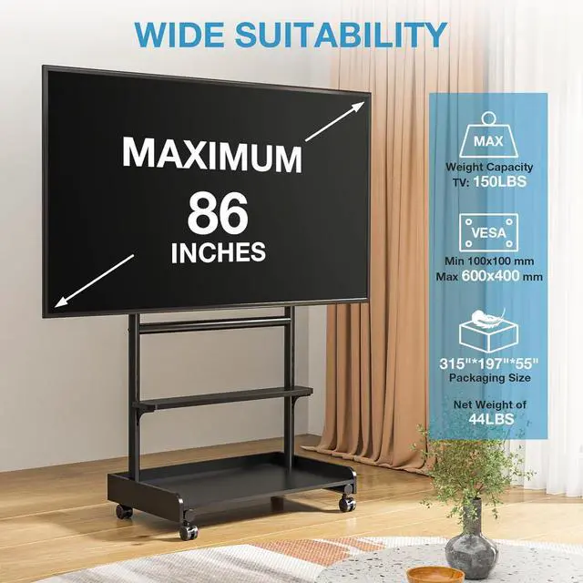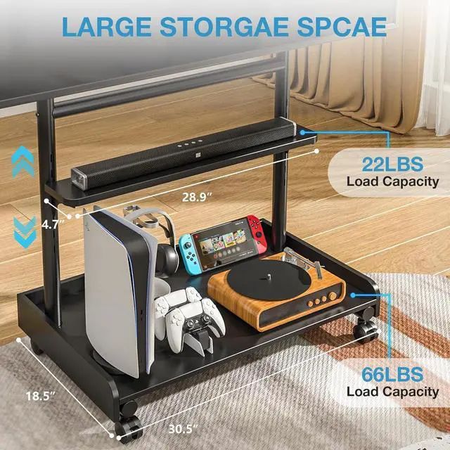Exceptional Load Capacity Built to handle up to 150lbs, this stand is ideal for supporting large 86-inch TVs while providing ample space for all your accessories, ensuring safety and reliability.