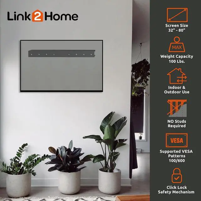 TV COMPATIBILITY: TV Bracket fits 32 to 80 screens with up to VESA 600mm mounting holes. VESA mounting patterns are the distances (in mm) between the four screw holes on the back of the TV