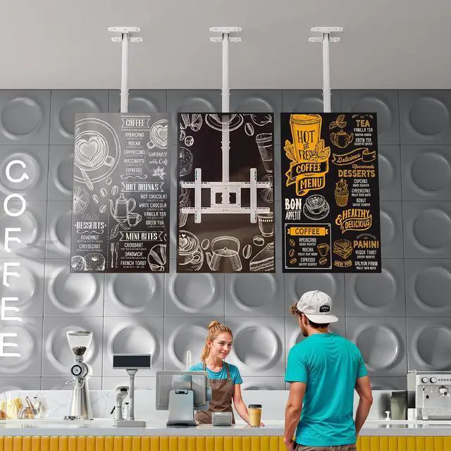 For Home & Outdoor Useful as an outdoor TV mount for gazebo, patio, or covered terraces, as well as restaurants and retail venues. This full motion ceiling TV mount helps save floor space while providing optimal viewing angles, making it a practical option for living rooms, waiting areas, and open-air installations.