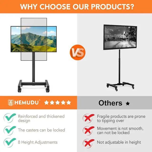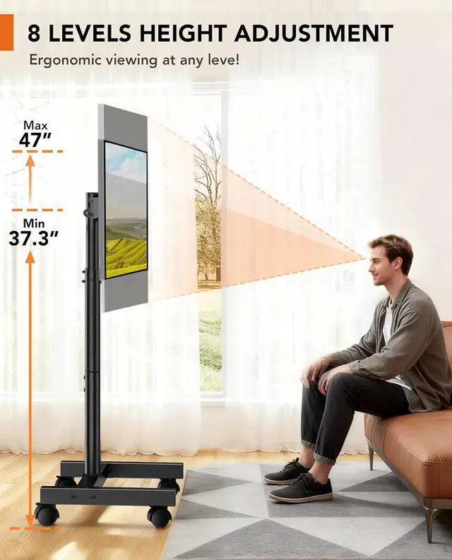 Compatibility: This tv mount stand fits most 13-50 inch flat/curved screens and monitors brands. The Mobile tv stand holds up to 44 lbs with VESA patterns 75x75mm to 200x200mm