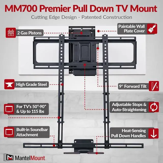 Watch the product video in the image gallery to see the MM700 in action. Enhance your home entertainment experience with a TV mount that offers full-range motion plus vertical travel.
