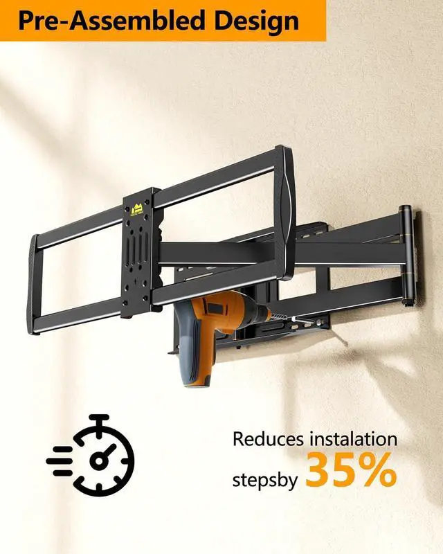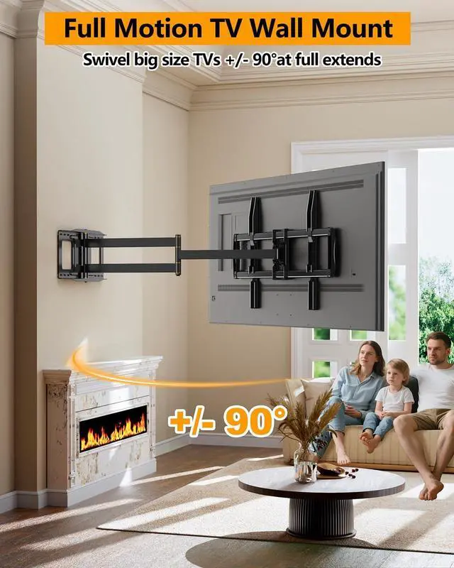 Large TVs: This 85 inch TV wall mount is Crafted from high-strength steel with a wide & sturdy wall plate, this long arm TV wall mount 75 inch securely holds large TVs up to 176 lbs. Its been thoroughly tested, including a 3x load test and 6, 000-time cycle test, ensuring long-lasting performance and reliability.