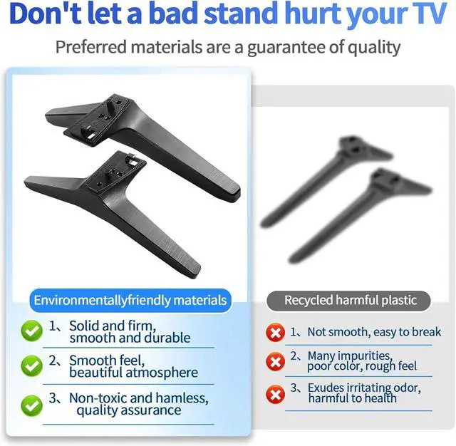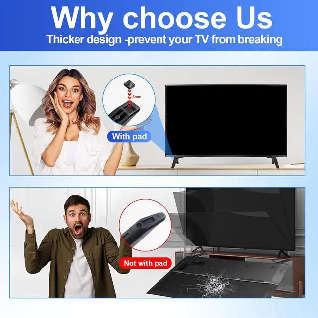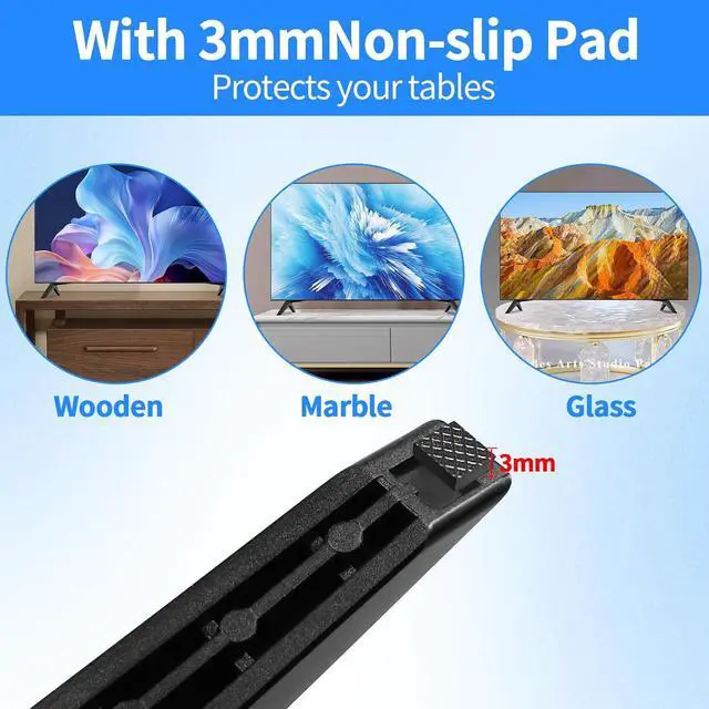 Quality AssuranceThe bottom of the TV leg is designed with 3mm rubber pads, which is anti-slip and also protects the desktop from scratches.