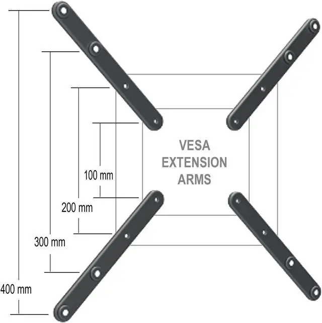 Sometimes your TV is a little too big for your mount. These steel arms extends any TV's VESA hole pattern up to 280mm in every direction.