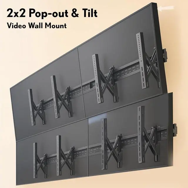 Easy Access Pop-Out Design: Push-in, pop-out VESA bracket arms allow hassle-free installation, port access, and maintenance, letting you reach the back of each TV without removing the entire system.