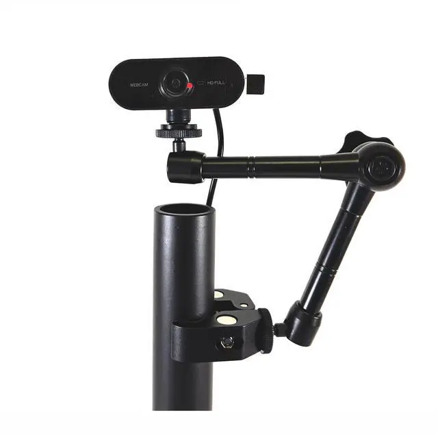 Easily clamps to any pole up to 1.5" diameter. The 7 inch articulating arm allows the user to position the light and webcam at virtually any angle.