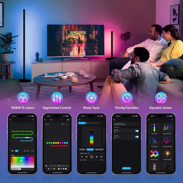DIMMABLE LED CORNER FLOOR LAMP WITH RGB IC LIGHTING EFFECT