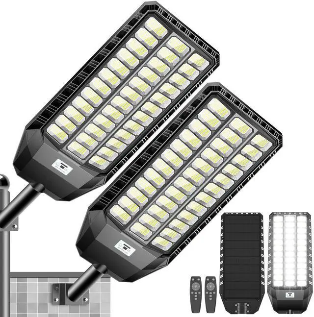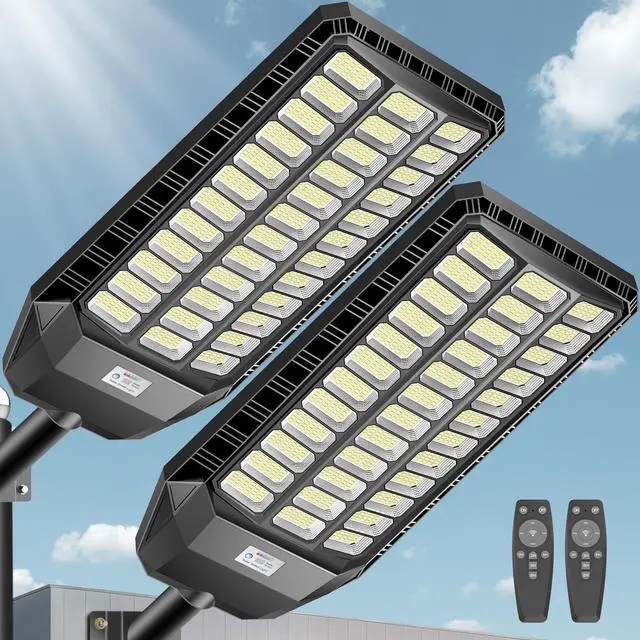 Solar Street Light, Commercial Grade Street Lights, IP67 Waterproof Solar Parking Lot Lights Dusk to Dawn Outdoor Lighting LED Security Flood Motion Sensor and Remote Control, 9500W*1Pack