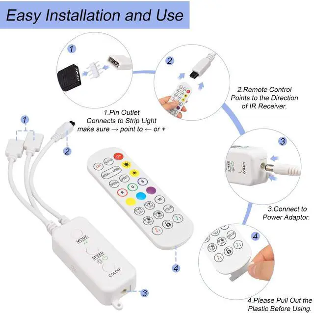 - Make sure the “?”on the led controller end is at the same side with the“+5V/12V/24V”of your led strip.