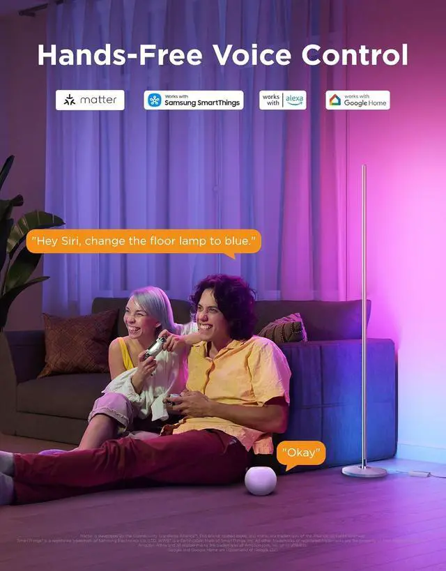 Smart Control: Manage your LED floor lamp with simple voice commands via Alexa, Google Assistant. And Govee Home APP also make it more convenient to enjoy multiple dynamic scenes like Cheerful, Romantic and design your living room or bedroom decorations.The official app download link is provided on the package in the form of QR code. Please make sure to download and use the genuine App for the full experience.