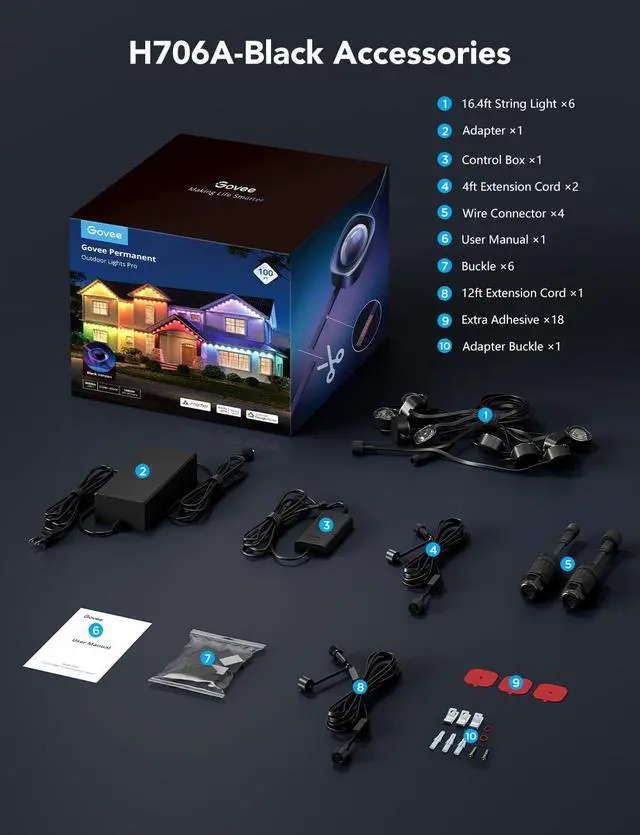 Smart App & Voice Control: Pair DIY permanent lights with Matter, Alexa, and Google Assistant for smart voice control. Use Govee Home App to individually control the color of each Govee light for outdoor decorations