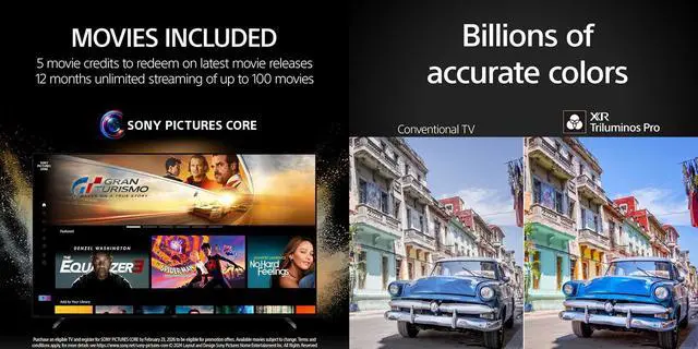 Instantly enjoy top movies and the largest IMAX Enhanced collection with the SONY PICTURES CORE app. Your BRAVIA TV comes with movie credits included so you can immediately watch some of the latest releases. Youre also subscribed to a regularly updated selection of new and classic movies to stream anytime., Studio Calibrated Picture