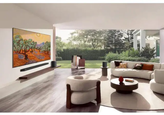The slim, flush wall mount design allows the TV to sit close to the wall, creating a clean, gallery style appearance. When not in use, the display can show artwork, photos, and other visual content.