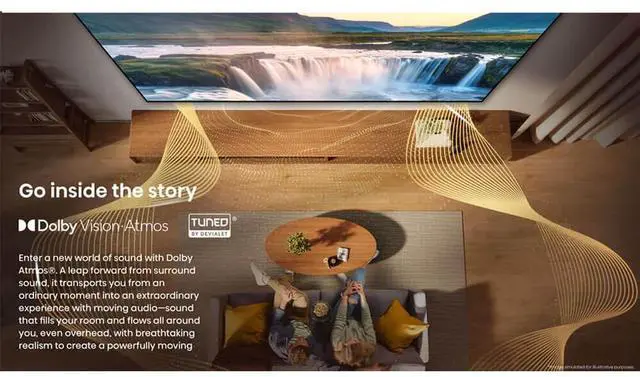 Never miss a minute of the actionfrom your couch. Dolby Atmos, the next evolution of surround sound, creates a moving and immersive audio experience, for every call of the ref and cheer of the fans. And Dolby Vision, with more flare and more depth, enhancing the detail of the picture, down to each shadow cast on the field. AI Smooth Motion