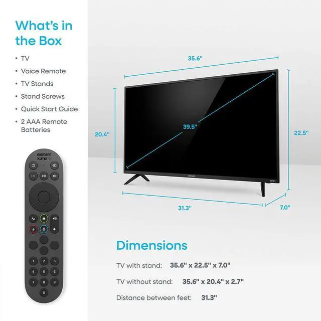 Experience excellent picture quality with Elements 40 inch Xumo TV perfect for a kitchen, RV, office, or other small space and comes at an affordable price. At 1080p resolution, you can enjoy vibrant colors and sharp contrasts on a crystal-clear screen. Plus, HDR technology provides enhanced color and contrast for an even more immersive viewing experience even in the darkest of scenes. With Bluetooth built in, you can easily pair your TV with compatible Bluetooth devices, such as speakers, headphones, game controllers, laptops, and more.