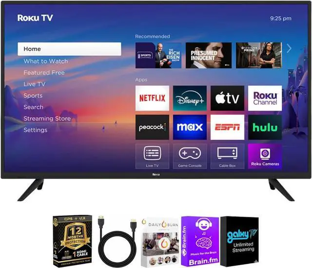 This bundle includes a high speed HDMI cable and streaming accessories for convenient setup right out of the box. A 12 Month CPS Protection Plan is also included to provide additional coverage and long term peace of mind beyond the standard manufacturer warranty.