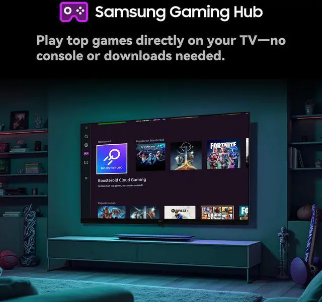 Compatible with Samsung TV Plus: Enjoy free live TV and instant cloud gamingno subscription or console needed. Stream live news, sports, and popular games directly from your TV with just a Wi-Fi connection.