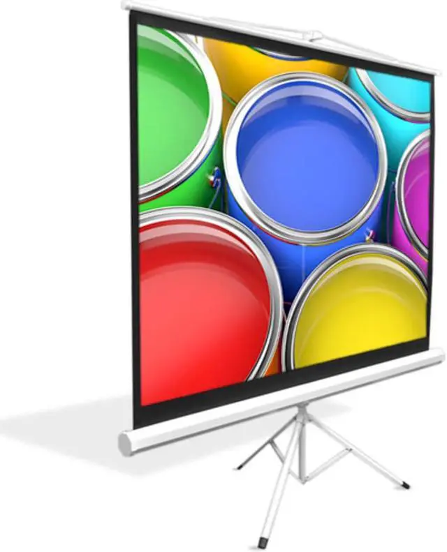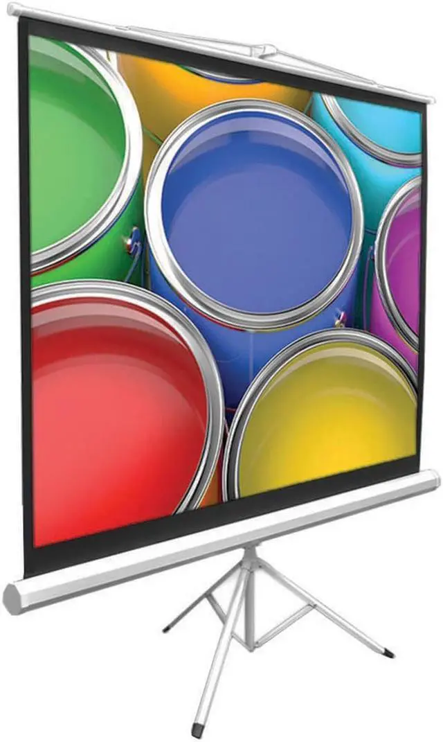 Pyle PRJTP72 Floor-Standing Portable Tripod Manual Projector Screen (72-Inch) 4:3 viewing formatMatte white projector screen Lightweight, portable and durable Premium viewing surface matte fabric Foldout steel tripod and roll-up screen style Ideal design for traveling/mobile presentationsBlack masking borderAluminum case screen housingQuick and easy setup72 in. 42.5 in. x 56.6 in. Floor-Standing Portable Tripod Manual Projector Screen (72-Inch)