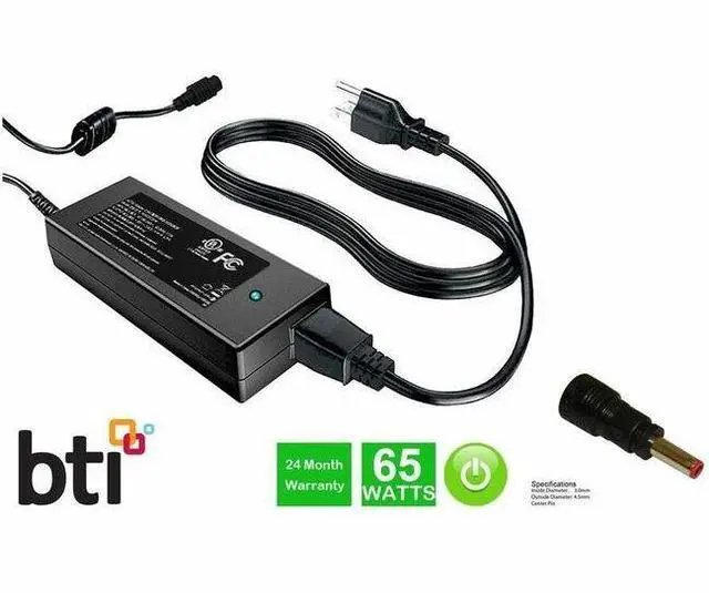 BTI 492-BDBZ-BTI 19V 65W AC ADAPTER COMPATIBLE WITH 0X8W1, INSPIRON 14 3000 (3480), 14 3000 (3481), 14 3000 (3490), 14 3000 (3493), 14 5000 (5400) 2-in-1, 14 5000 (5401), 14 5000 (5402), 14 5000 (5406) 2-in-1