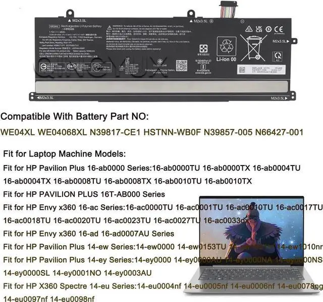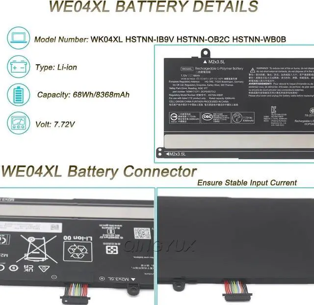 The Package Includes: 1X WE04XL battery. Before purchasing, please open the back cover of the laptop to confirm the battery model and capacity.