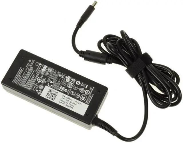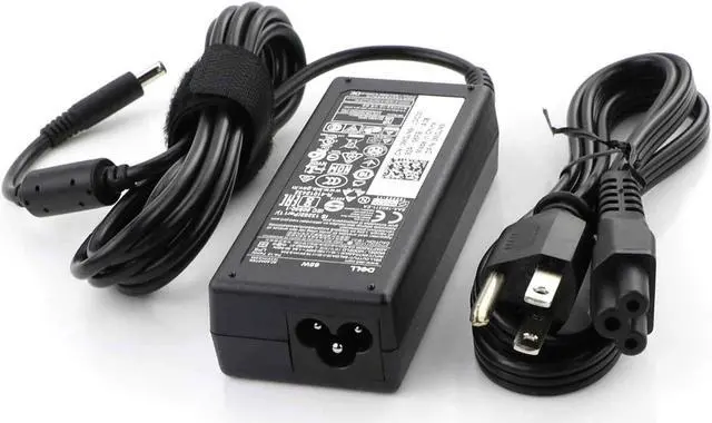 New Genuine Dell OEM 65-watt AC Power Adapter power supply with 4.5mm connector.