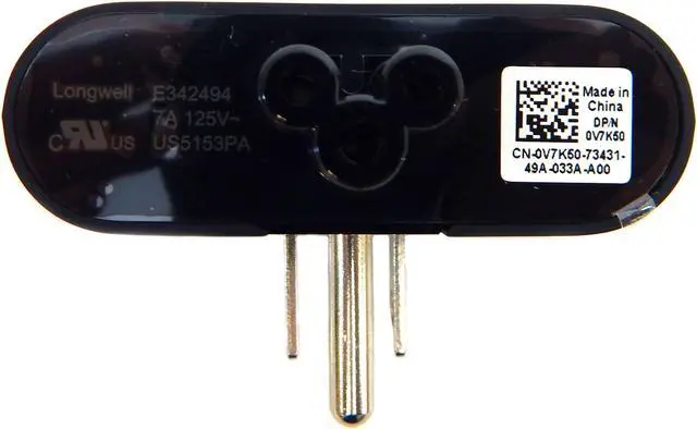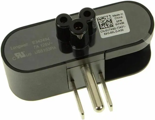 Genuine Dell OEM 3-Prong AC Power Plug Unit with grounded three prong plug. This is a wall adapter that attaches to the Dell 30-watt and 45-watt Slim Power Adapters- enabling it to fit into crowded sockets and power strips.