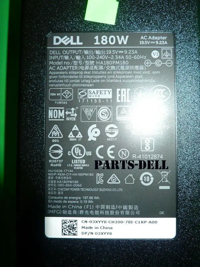Genuine Dell Inspiron 7577 180W Laptop Power Adapter Charger HA180PM180 3XYY8