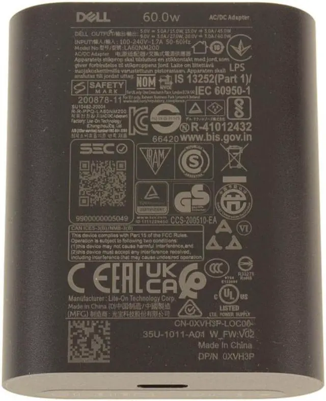 Genuine Dell OEM AC Power Adapter 60-watt Laptop Charger. This power adapter uses the USB C (USB Type-C) connector.