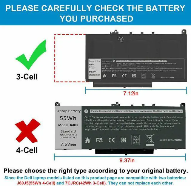 • NOTE: There are 2 different batteries for your Dell laptop model and they are NOT compatible, please compare your original battery with our photos to make sure it can fit.