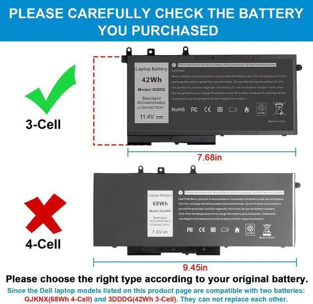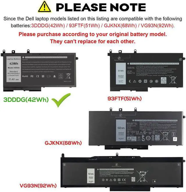 • NOTE: There are 4 different batteries for your Dell laptop model and they are NOT compatible, please compare your original battery with our photos to make sure it can fit.