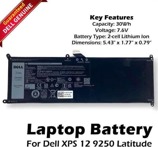 Dell Latitude 12 XPS 9250 Series 7.6V 30Wh Battery with part numbers 7VKV9, 9TV5X, and T02H001 is a replacement battery designed for the Dell Latitude 12 XPS 9250 series of laptops. Here are some key features and details about this battery: