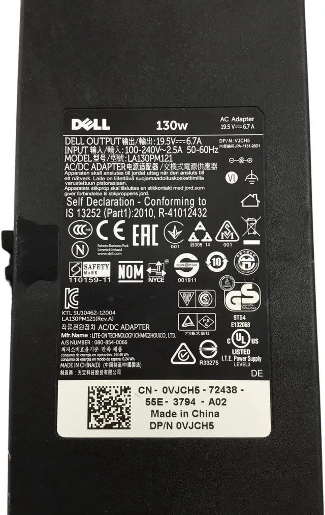Package Includes: 1 Dell 130W 19.5V AC Adapter Charger LA130PM121 0VJCH5 0M1MYR 0HG5D1