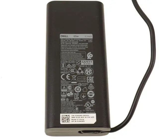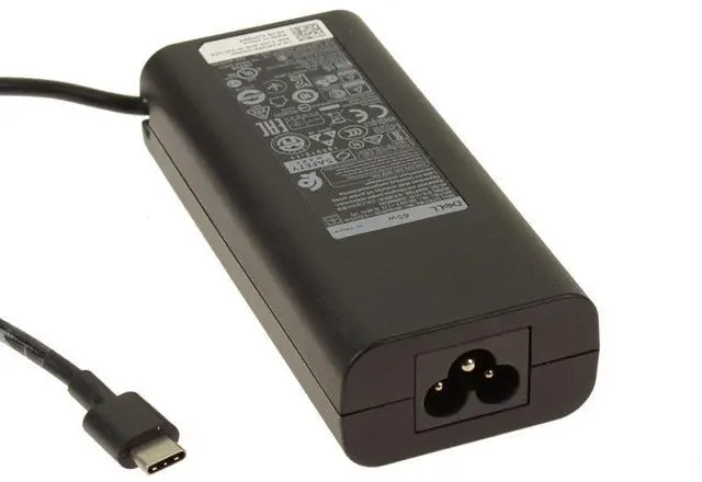 Genuine Dell OEM AC Power Adapter 65-watt power supply. This power adapter uses the USB C (USB Type-C) connector.