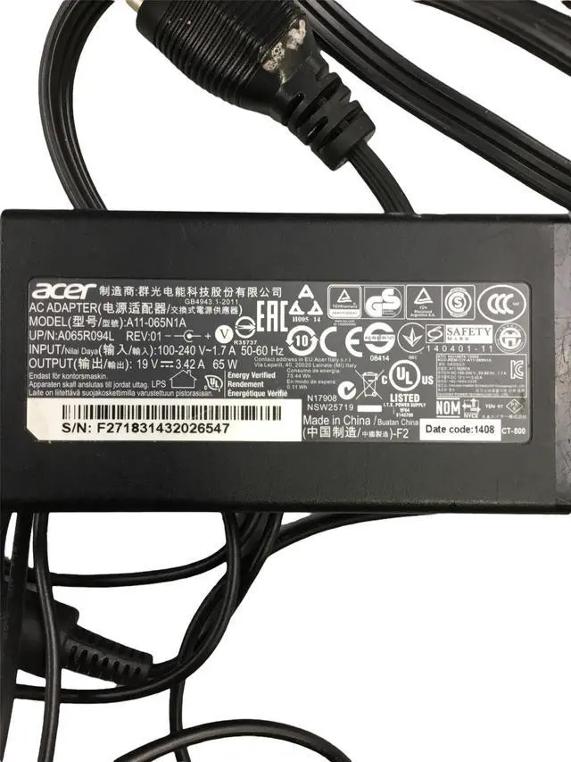 Package Includes: 1 Acer A11-065N1A 140401-11 AC Power Adapter