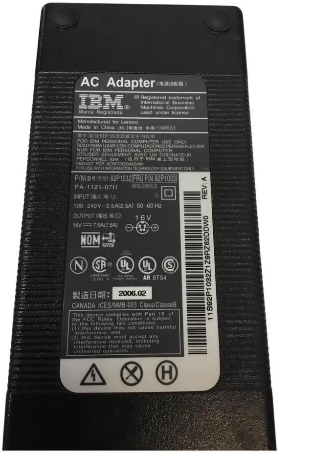 Package Includes: IBM/Lenovo Laptop Computer AC Power Adapter 16V 92P1032 92P1033 PA-1121-0711