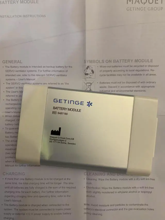 This REF 64-87-180 battery is designed for seamless compatibility with Getinge MAQUET Servo I, Servo S, and Servo U models, ensuring uninterrupted critical care operations. Perfect for hospitals, clinics, and medical equipment repair services.