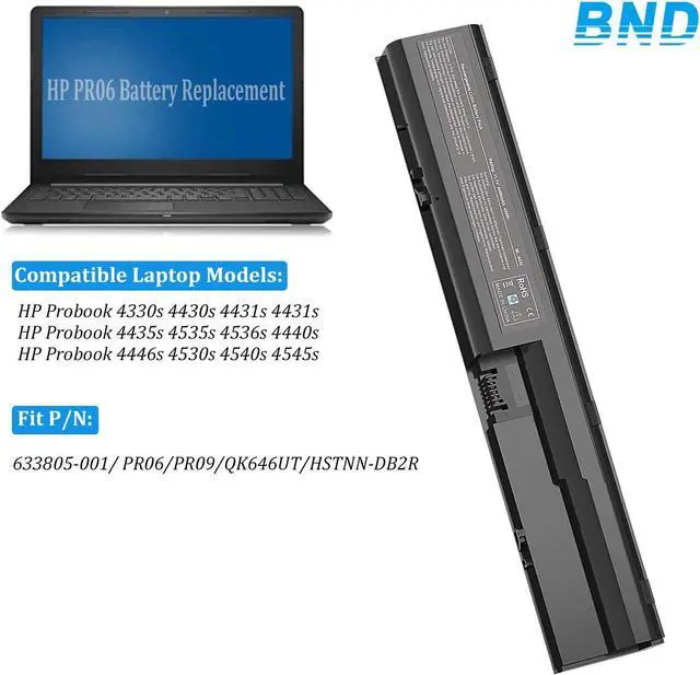 BND 633805-001 Laptop Battery Compatible with HP Probook 4540S 4530S 4535S 4440S 4430S Series, fits P/N PR06 HSTNN-DB2R HSTNN-OB2R HSTNN-IB2R -[4400mAh/49Wh]