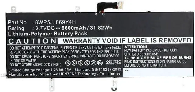 Synergy Digital Tablet Battery, Compatible with Dell Venue 10 5000 Tablet, (Li-Pol, 3.7V, 8600mAh) Ultra High Capacity, Replacement for Dell 069Y4H Battery