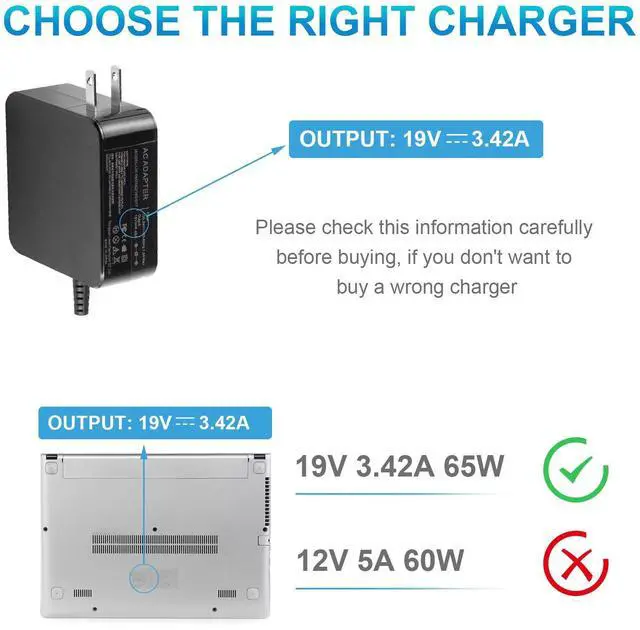 Please note: You can't just see the PC model when you purchase the charger, also check the specification if they fit your model carefully. Such as: Connector Size(4.0mm*1.35mm), Output voltage and current( 19V 3.42A 65W ).