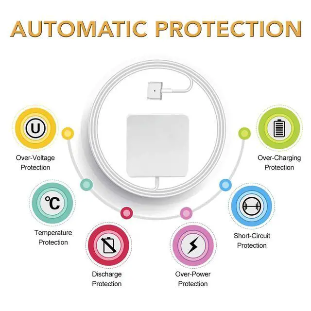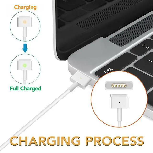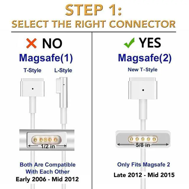 Laptop power connectors are available in MagSafe, MagSafe 2 and USB-C types; adapter wattages range from 29W to 87W. Always use a wattage-matched adapter for your device: a higher-wattage compatible adapter works safely but wont speed up charging, while a lower-wattage adapter may lack sufficient power.