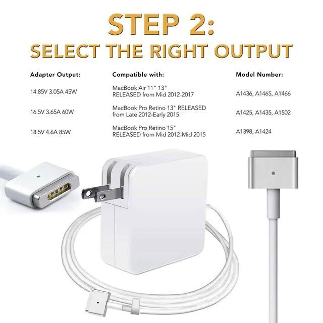 This replacement adapter is designed to fit 15-inch retina-display laptops released between Mid 2012 and Mid 2015, including the following model ranges: