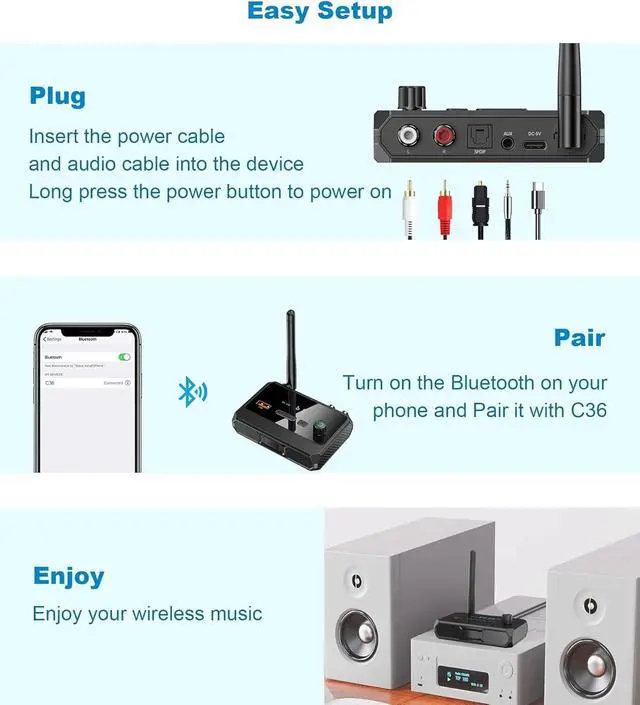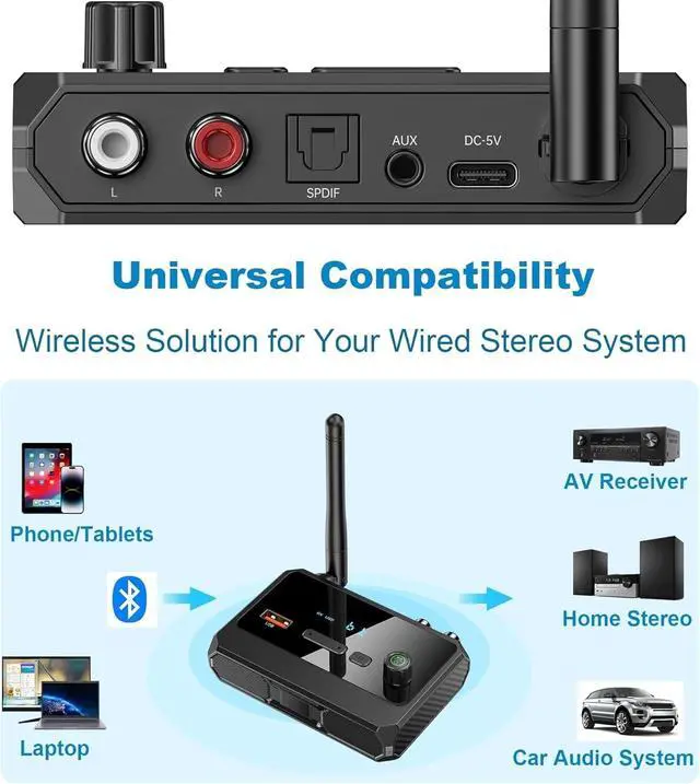 Product DescriptionTransform your traditional audio setup into a modern wireless hub with our Bluetooth 5.3 Audio Receiver. Designed for versatility and superior sound, this adapter lets you stream high-resolution audio from any Bluetooth-enabled device to your home stereo, car system, or vintage speakerswithout compromising on quality.