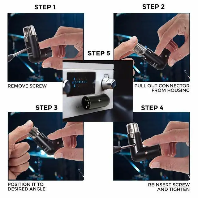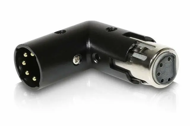 Whether youre performing on the road or in the studio, equipment is constantly moving and changing. With this handy XLR Angle Adapter from Coluber, your cables always take center stage. Shaped like an L and featuring fully adjustable male and female ends, the dual connector allows you to rotate each 5-pin plug so your wires fit perfectly with any setup. This is particularly useful when a receiving gear has permanent connections, or in tight spaces where wires are difficult to maneuver.