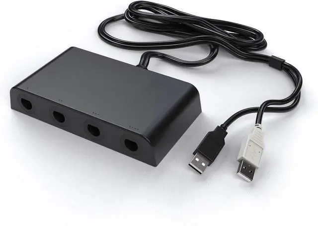 The GameCube Controller Adapter allows you to connect up to four GameCube controllers (or wireless GameCube controllers) to a Wii U system, PC USB, Switch