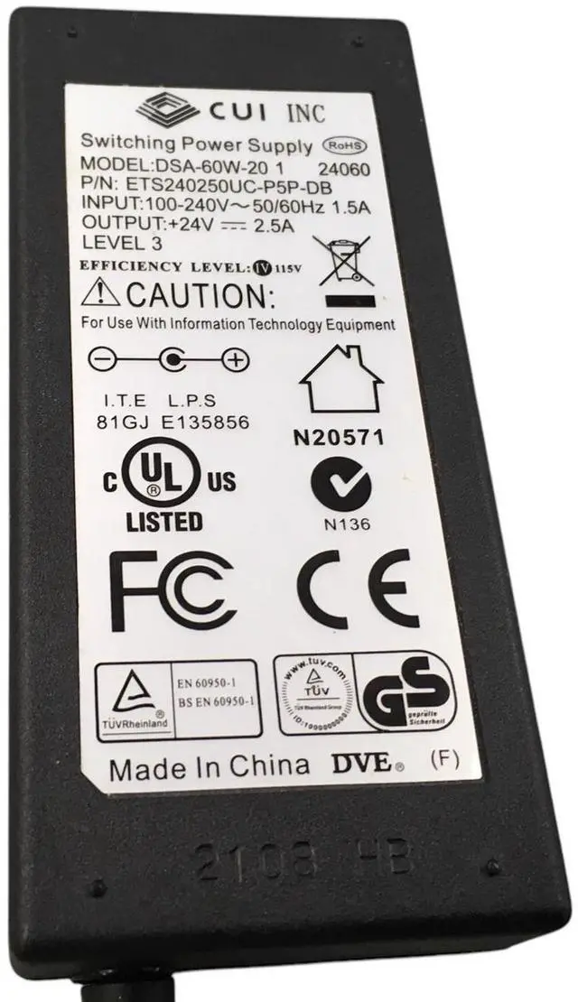 Package Includes: DVE DSA-60W-12 1 60W 12V 5A 5.5 mm AC Switching Power Adapter