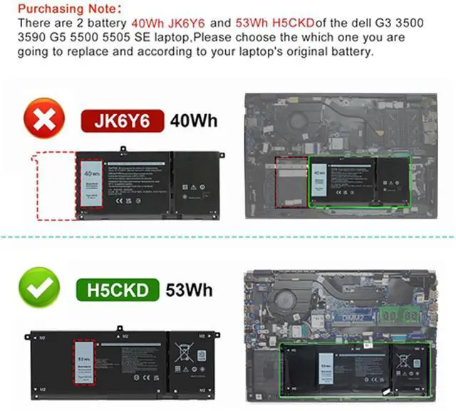 There maybe 2 battery models fit for your laptop: JK6Y6 40Wh and H5CKD 53Wh, just refer to the below picture!